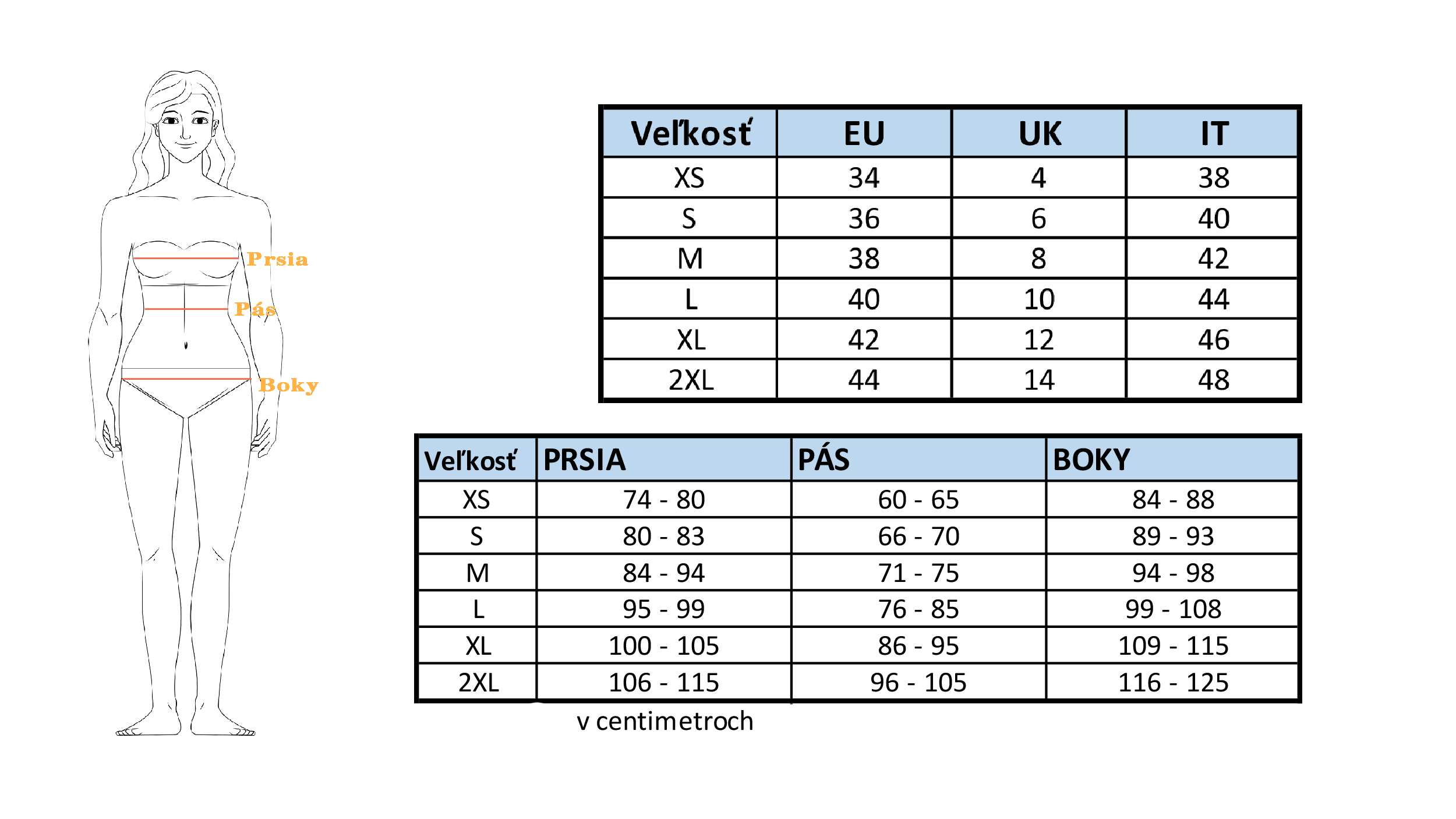 Modelka Naty meria 167 cm, miery 96–77–107, má na sebe veľkosť XL.